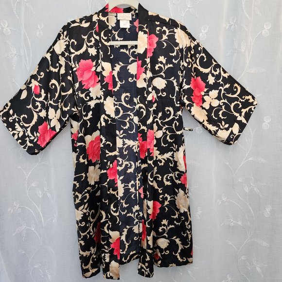 Inner Most Intimates Sleepwear Kimono Robe Or Coverup With Red Gold Floral Design By Inner Most Poshmark